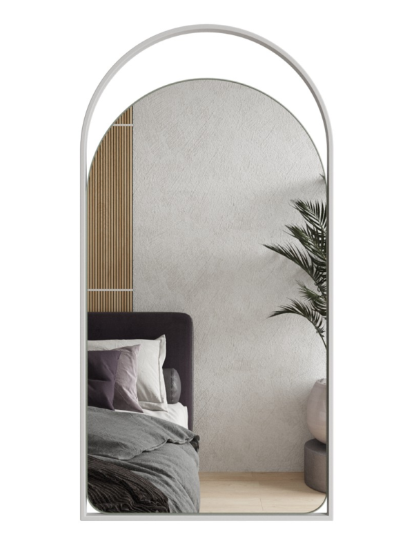 Дизайнерское арочное настенное зеркало Glass Memory Artful 1020*520 в металлической раме белого цвета в Краснодаре